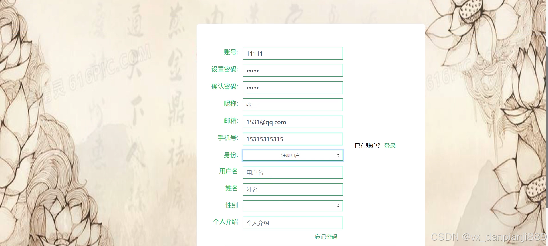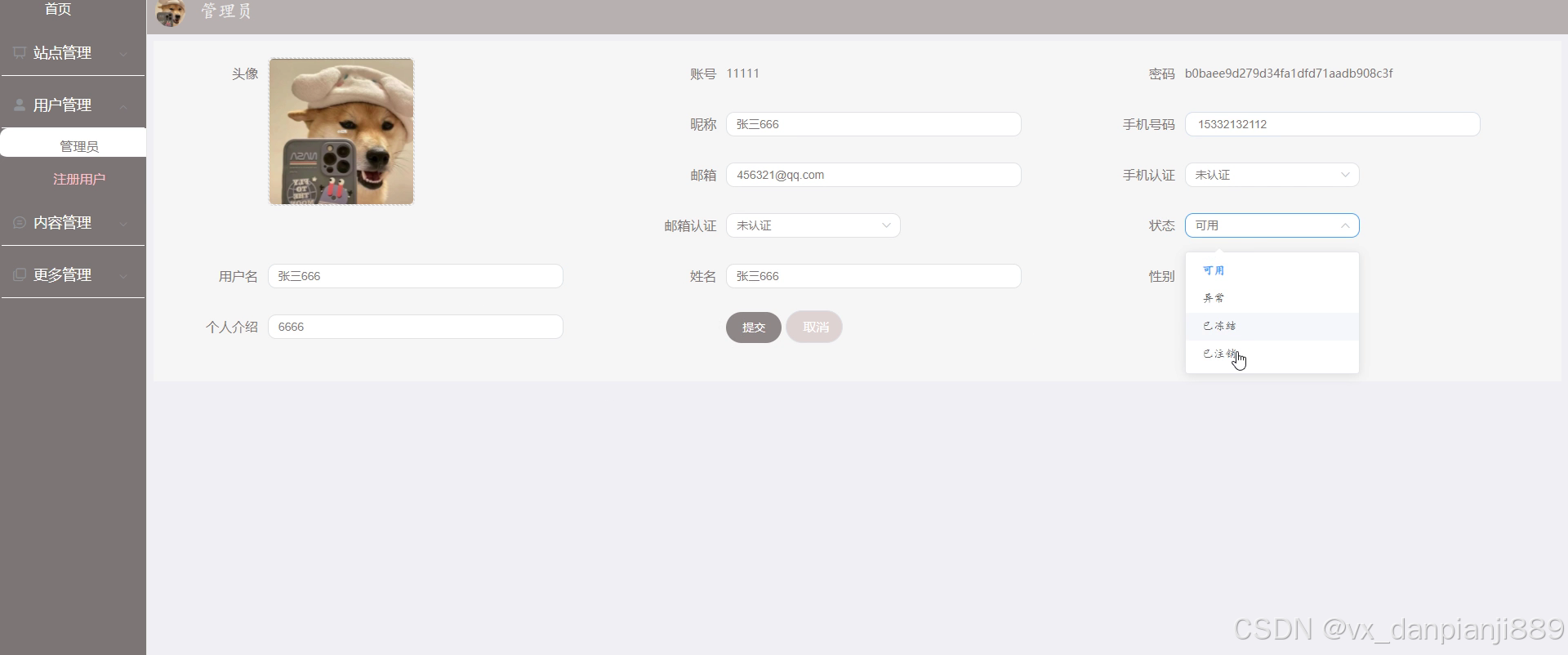 5.修改用户信息,可以修改用户密码或者用户名等一些个性化操作。