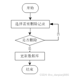 用户可选择要删除的信息进行信息删除操作,在删除信息时系统提示是否确定删除信息,是则删除信息成功,系统数据库将信息进行删除。删除信息流程图如图2-4所示。