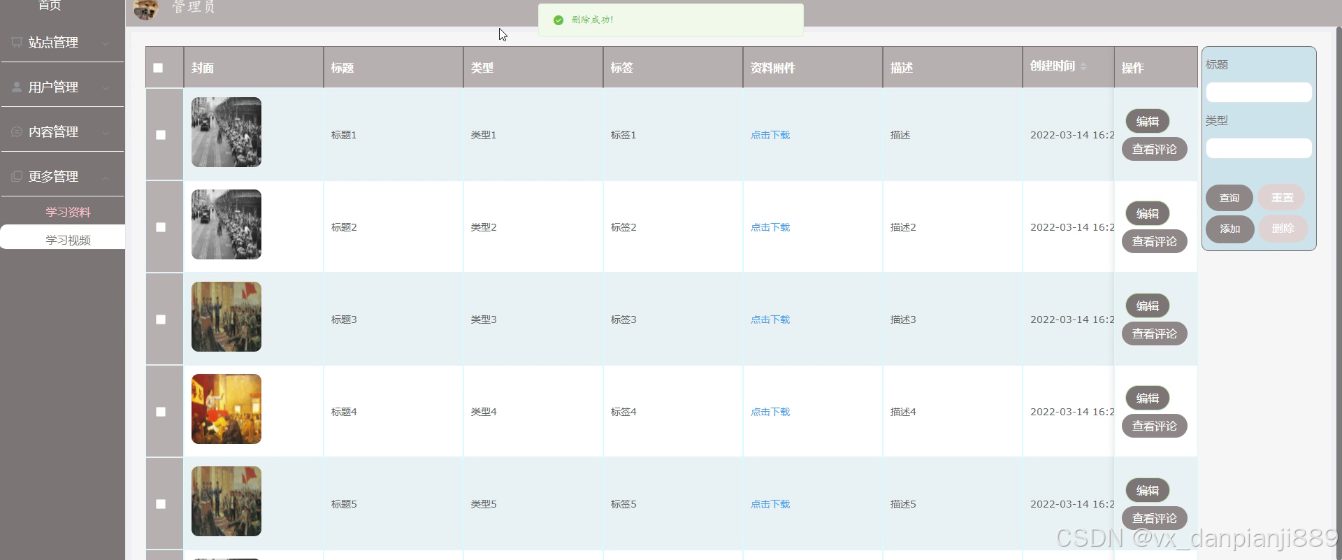 学习视频展示,在学习视频列表中可以查看等视频文件、可以在线观看以及在线下载等,如图4-13所示。