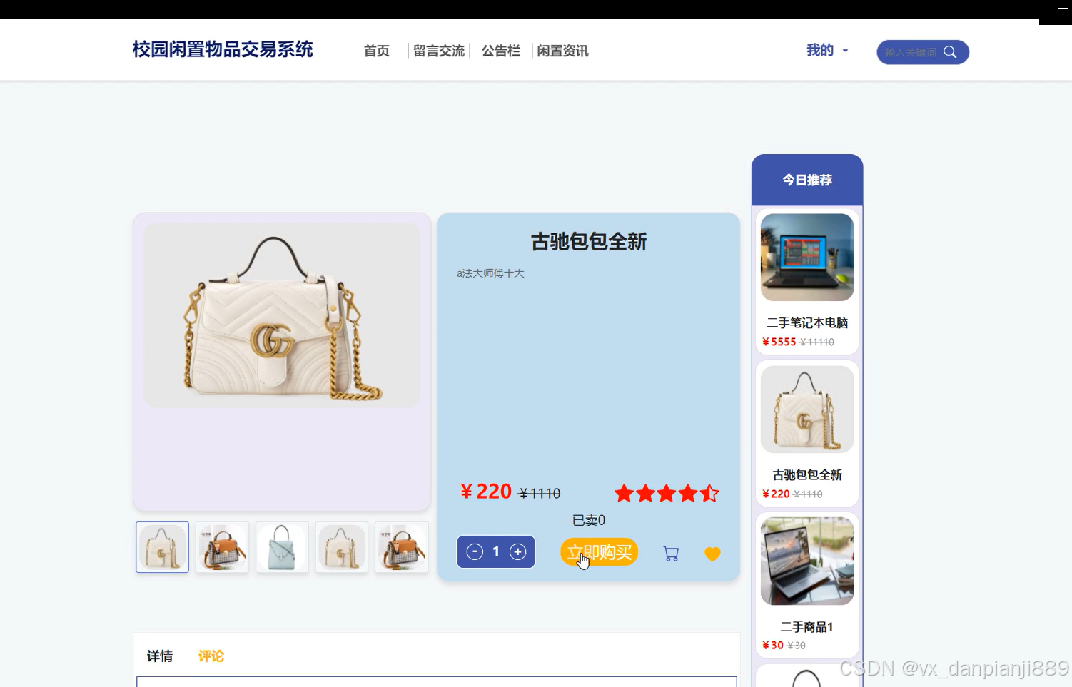 - 购物车:这是校园闲置物品交易系统最根本组成。客户在寻找自己喜欢的商品时,可以将其添加到购物车中,然后再次查询其他商品。