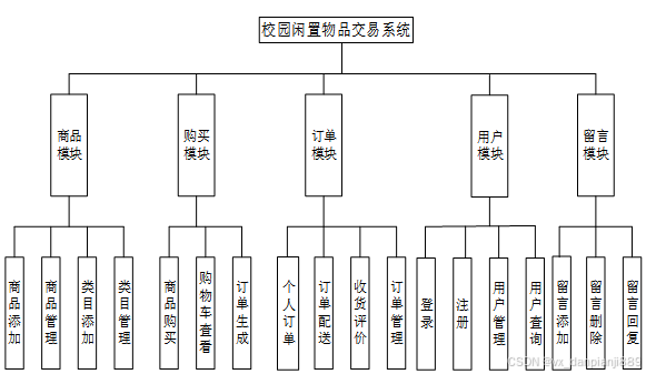 - 商品管理:用户下订单购买商品,由管理员定期负责处理,根据订单信息向用户送货,维护现有校园闲置物品交易系统中的所有商品详情。