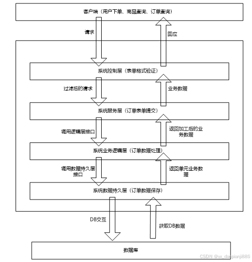 “控制层”主要控制前端界面和后端程序数据之间的同步,然后根据前端请求完成数据更新或者是界面控制。以及负责将“服务层”提供的服务进行最后组装并调用。