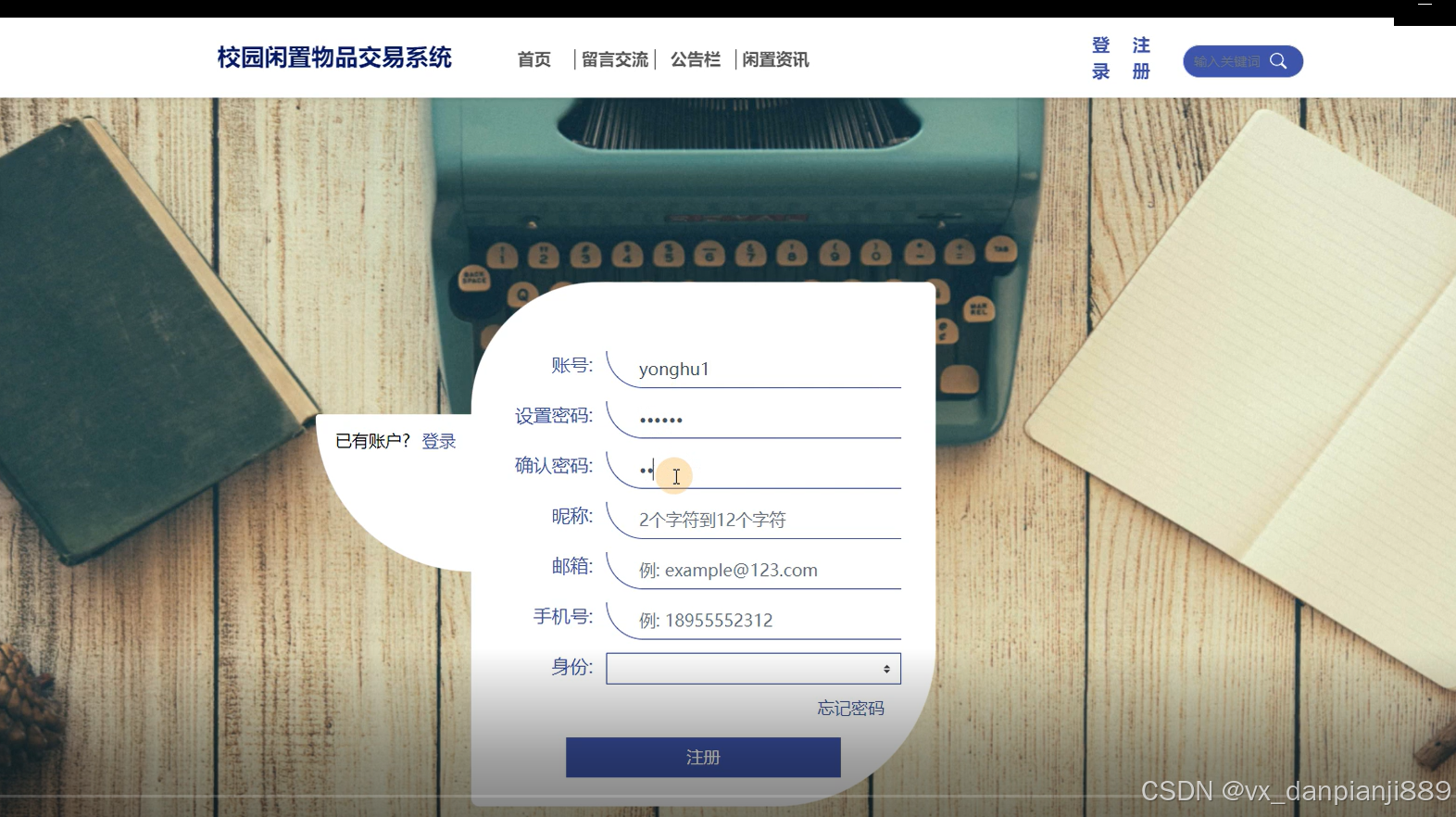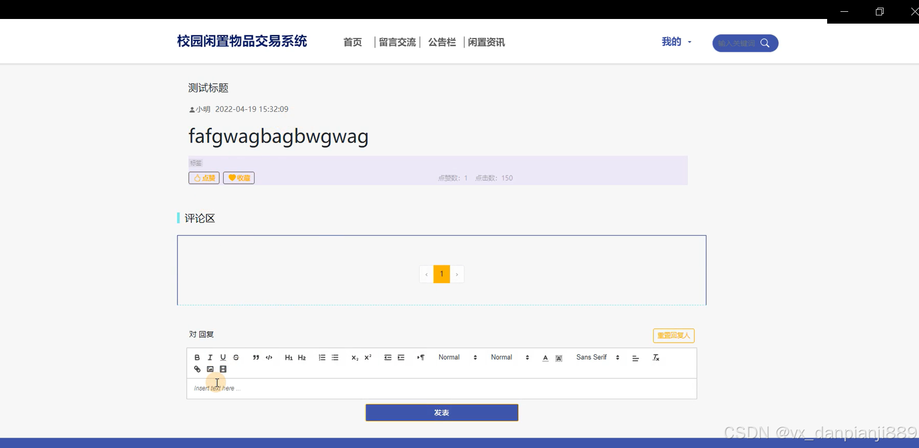 第五章对校园闲置物品交易系统进行实现,并贴出相关页面截图,语言描述出具体功能实现的操作方法。