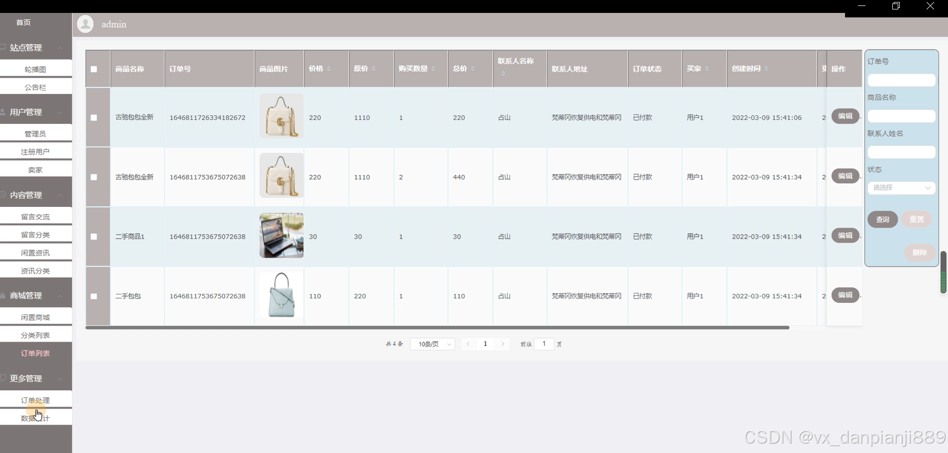 网站管理员在系统软件中扮演着非常关键的角色,管理者可以执行商品管理,订单管理系统,用户管理系统,商品类目管理等要求。此外,系统软件还应确保信息内容清晰有序,管理员能够轻松的找到需要的管理类别。