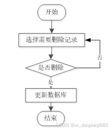 管理员可以对信息等进行信息的删除,对要删除的信息进行选中后,点击删除按钮,系统会询问是否确定,若点击确定,则系统会删除掉选中的信息,并在数据库内对信息进行删除,删除信息流程图如图3-6所示。