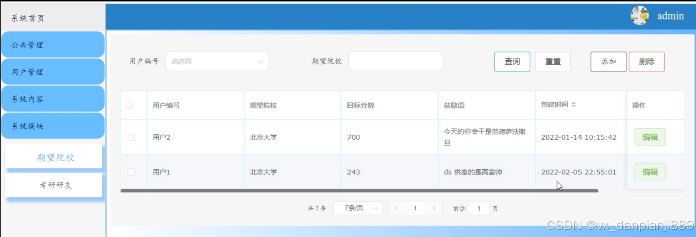 Specifically, in the system design, B/S structure is adopted. At the same time, java technology is used to design on dynamic pages, and Mysql database is used in the background, which is an excellent planning system for postgraduate entrance examination.