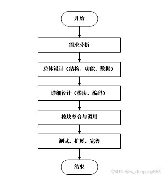 考研规划系统开发时,首先进行需求分析,进而对系统进行总体的设计规划,设计系统功能模块,数据库的选择等,本系统的开发流程如图3-1所示