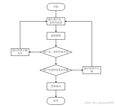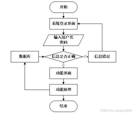 用户打开并进入系统后,会先显示登录界面,输入正确的用户名和密码,系统自动检测信息,若信息无误,则用户会进入系统功能界面,进行操作,否则会提示错误无法登录,操作流程如图3-3所示。