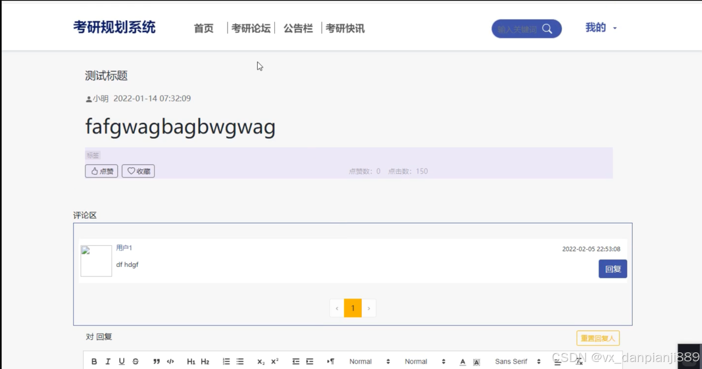 公告栏,在公告栏页面中可查看公告信息:标题、评论区、回复等信息,还可进行回复评论等操作,如图5-10所示。