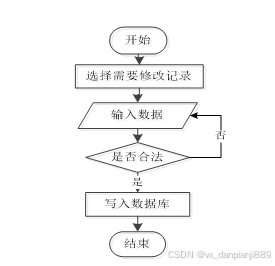 管理员可以对信息等进行的修改,用户也可以对自己权限内的信息进行修改,首先进入修改信息界面,输入修改信息数据,系统进行数据的判断验证,修改信息合法则修改成功,信息更新至数据库,信息不合法则修改失败,重新输入。修改信息流程图如图3-5所示。