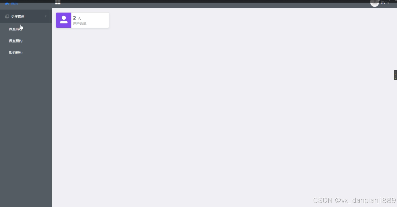 (1)更多管理功能需求:更多管理部分包括课室信息、课室预约、取消预约、使用通知、报修管理、公告管理,管理员可以对其进行添加,修改,删除,以及查询等。