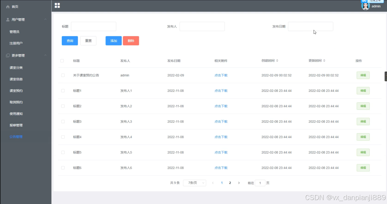 c.删除课室信息:管理员可以根据情况,对课室的基本信息进行修改等操作。