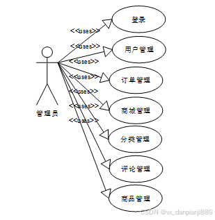 社区购物小程序的后台中,管理员对用户在前台提交申请产生的数据进行处理,以满足用户的需求。前台系统和后台系统有数据交互,整个系统各个部分相互独立又密不可分。后台的功能主要包括用户管理、商品管理、订单管理。