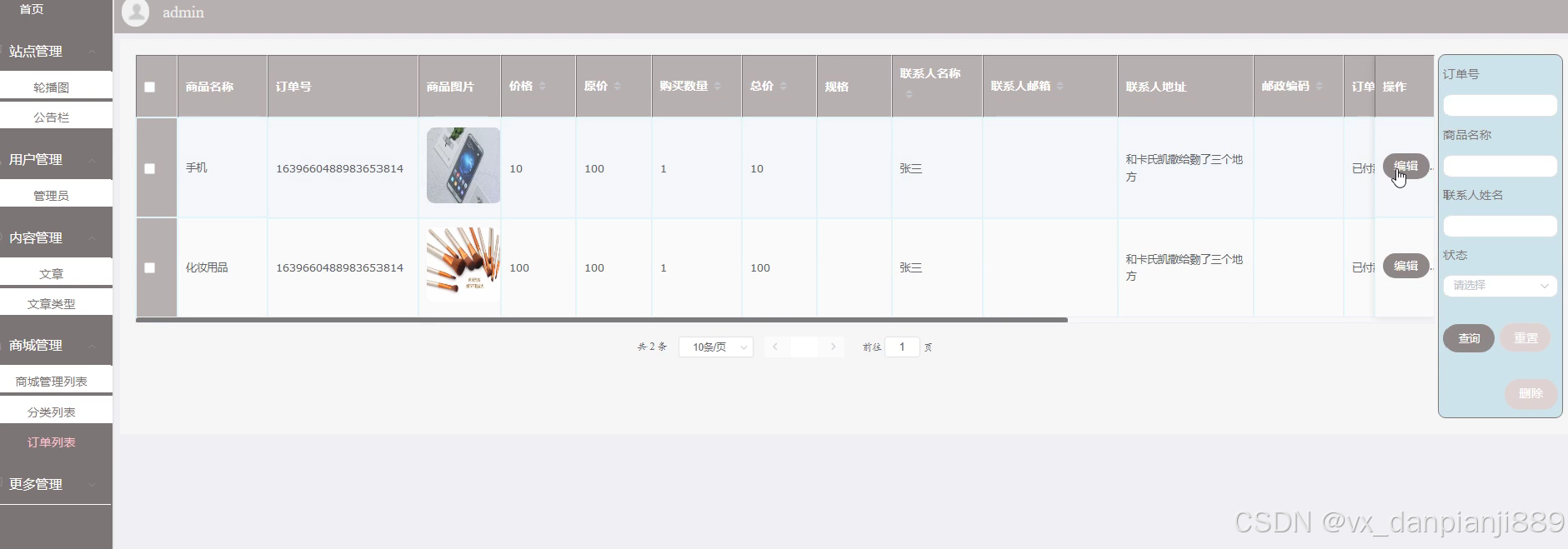 (2)商品管理:主要包括商品列表、商品类目管理、商品添加、商品信息管理等功能。