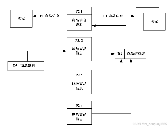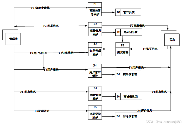 系统第二层数据流图主要详细反应各功能模块对应的操作与数据进行交互的原理。并且更详细的显示出各角色对功能模块操作的数据流向,让开发人员能了解该系统的开发方向,能够更准确的开发出系统模型。