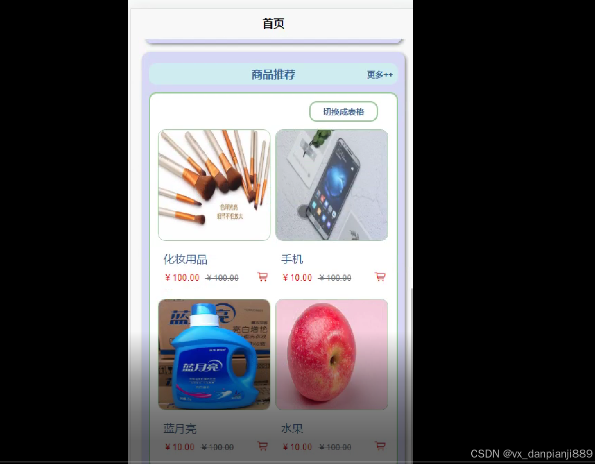 | 商品名 | 商品类别 | 商品价格 | 商品状态 |