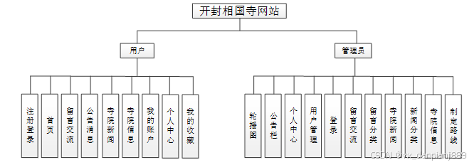 开封相国寺网站系统从角色上划分为了注册用户和管理员两种角色。