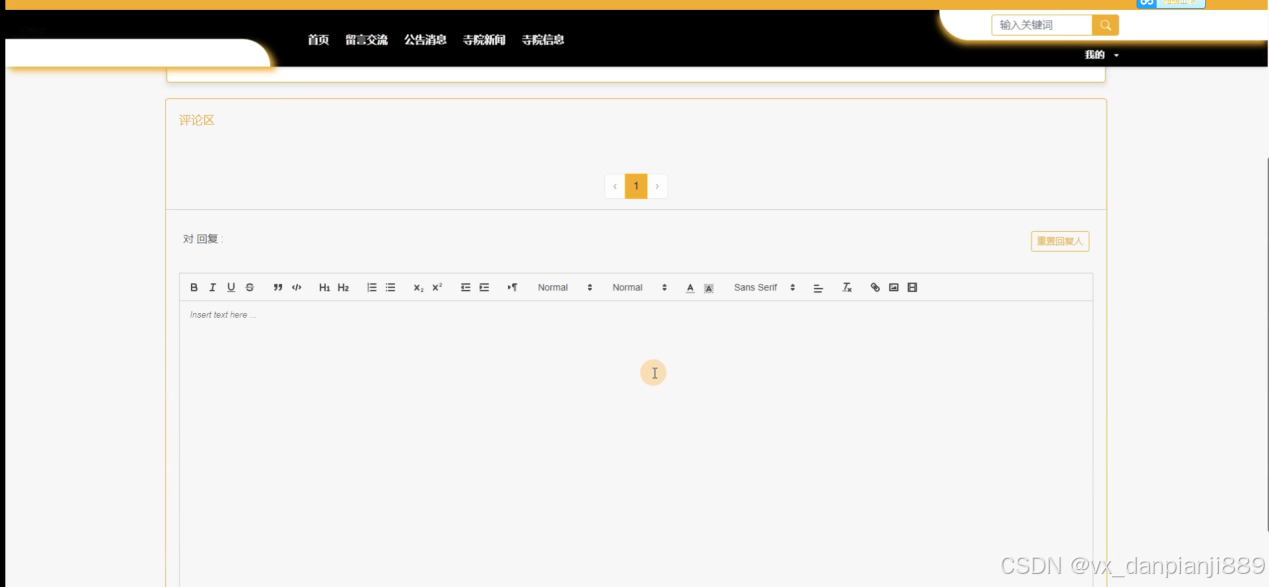 (4)寺院新闻:在首页导航栏上我们会看到“寺院新闻”这一菜单,我们点击进入进去以后,会看到所有管理员在后台发布的寺院新闻信息,能够对喜欢的寺院新闻进行点赞,如果下次想要更快的找到这篇新闻,也可以进行收藏、评论;