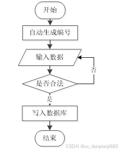 用户成功登入系统后就能够实现增加数据的操作,增加数据的编号是特定的,系统生成,用户不能随意填写,除了编号以外,其他增加信息用户自己填写,填写后的信息经过系统验证,验证合法通过就显示增加数据成功了,相反的话,就没有增加成功,图2-1显示的就是在增加数据时的流程。