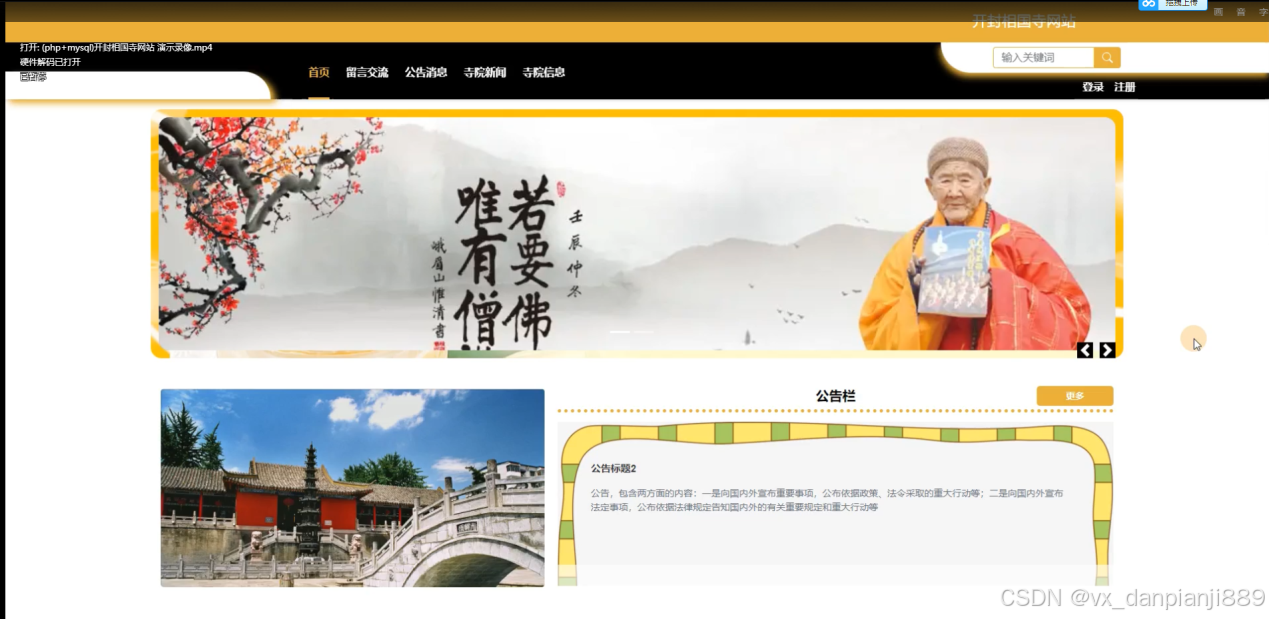 The development of Kaifeng Xiangguo Temple website makes use of the existing mature technology reference, takes the source code as the template, analyzes the combination of function adjustment and the actual needs of Kaifeng Xiangguo Temple website, and discusses the use of Kaifeng Xiangguo Temple website.