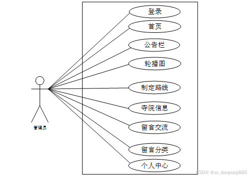 开封相国寺网站系统的管理员是维护整个开封相国寺网站系统中一系列数据流程,管理员角色用例如图2.3所示。