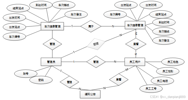 下面是整个地铁智慧管理系统中主要的数据库表以及总E-R实体关系图。
