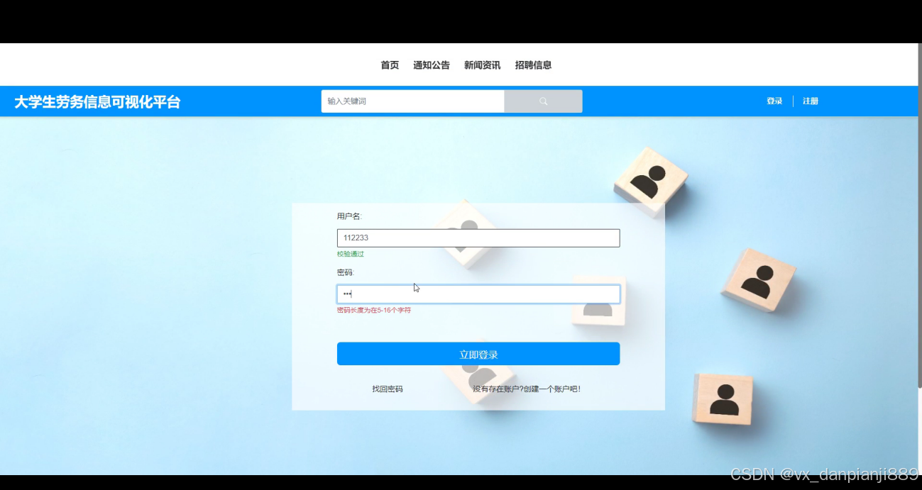 (1)登录:员工用户的账号是由管理员在后台添加生成的,可直接输入账号密码进行登录系统。