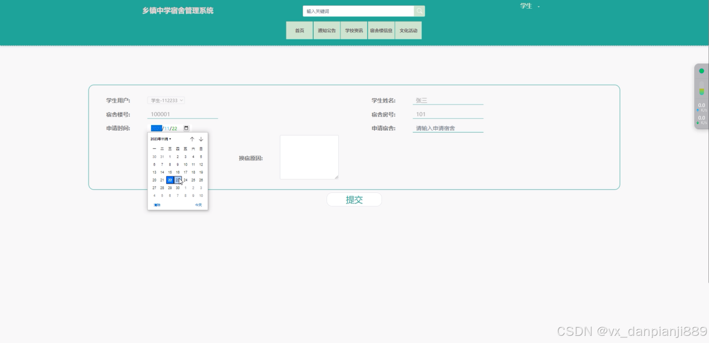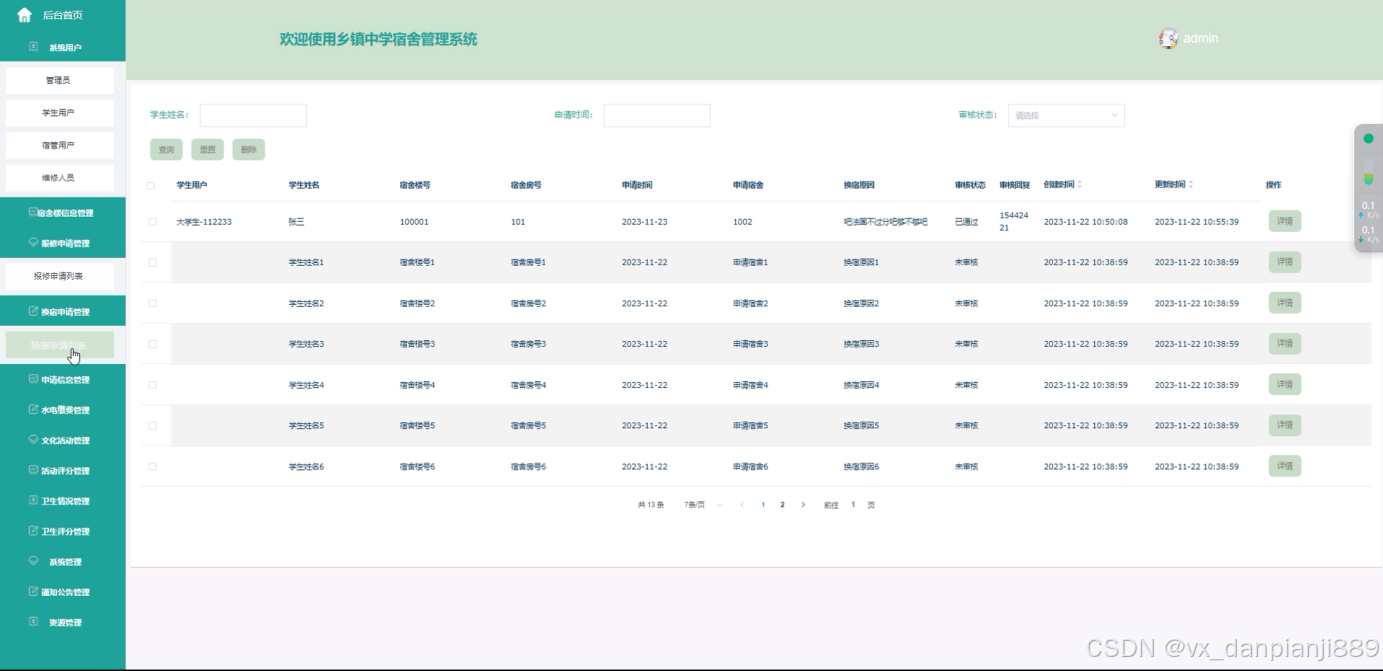 换宿申请:管理员可以处理学生的换宿申请,包括审核申请、调整宿舍分配、记录换宿过程等。