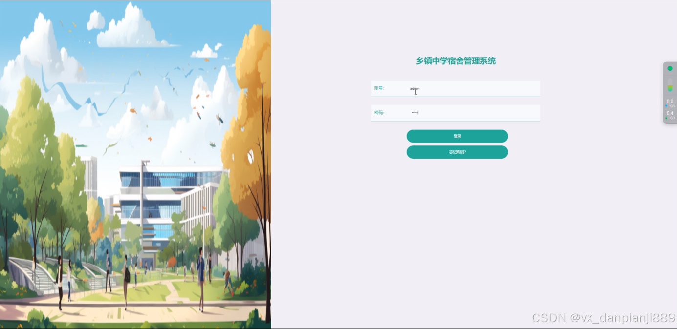 | 登录模块测试 | 登录成功的情况 | 使用者可以通过浏览器进入到乡镇中学宿舍管理系统登录界面,输入用户名:admin和密码admin后,选择管理员这一身份,点击“登录”按钮。 | 成功登录到管理员管理的界面 | 正确 |