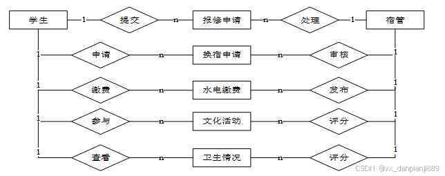 The system communicates with the server through a browser, enabling data exchange and changes. Users can manage dormitory building information, submit and process repair applications, apply for and review accommodation changes, manage and pay water and electricity expenses, organize and participate in cultural activities, and submit and record activity ratings through the system. The system provides a scientific management approach and convenient services, greatly improving work efficiency and reducing errors and omissions in data storage.