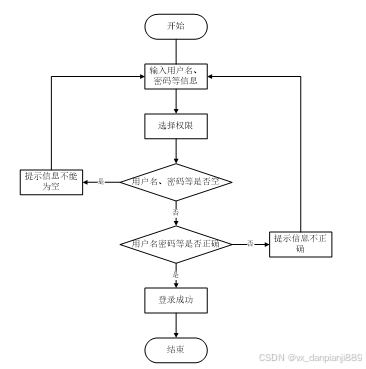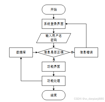 在用户打开并进入系统后,系统通常会首先显示登录界面。用户需要输入其正确的用户名和密码,然后系统会自动检测这些信息。如果用户提供的用户名和密码与系统中存储的匹配,那么系统会验证通过,并允许用户进入系统的功能界面,可以进行相关操作。然而,如果用户输入的用户名或密码有误,系统将无法验证用户身份。在这种情况下,系统通常会提示用户错误的登录信息,并阻止其进入系统功能界面。这个提示可能会显示一条错误消息,指示用户名或密码不正确,要求用户重新输入。操作流程如图3-3所示。