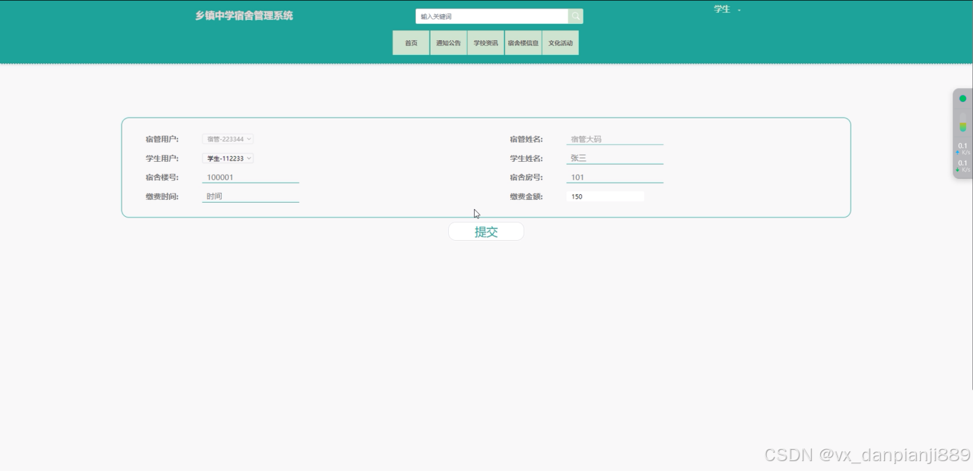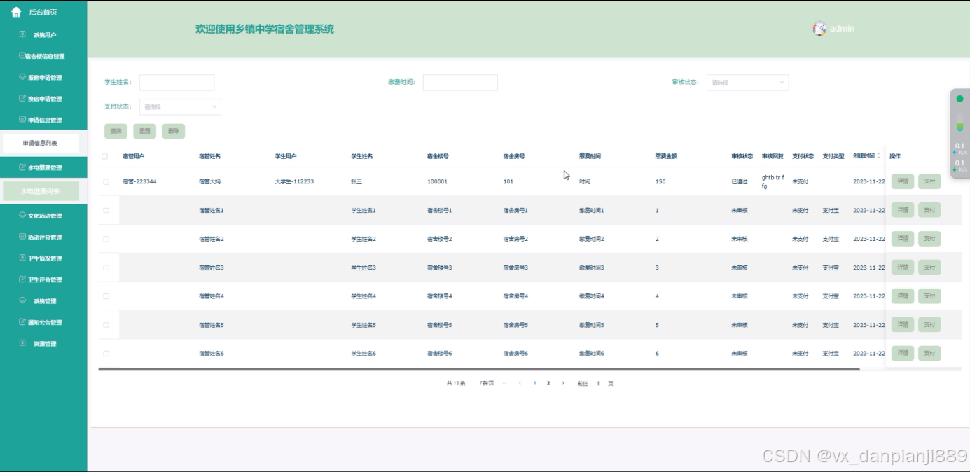 水电缴费管理:宿管可以管理学生的水电费缴纳情况。这包括查看缴费记录、生成缴费通知、更新缴费状态等。