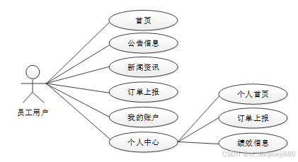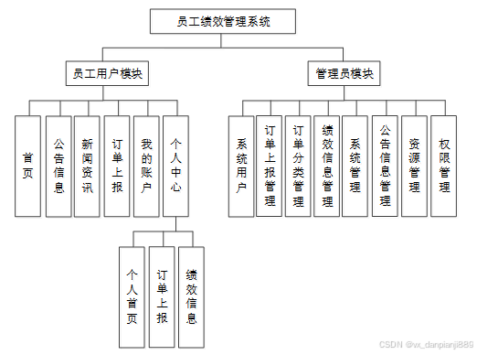 员工绩效管理系统我划分为了员工用户模块和管理员模块这两大部分。