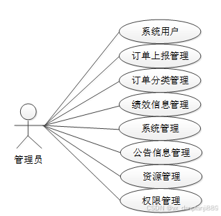 在系统开发设计前,应该对功能做初步设想,清楚这个管理系统有什么板块,每个板块有什么功能,整体的设计是否满足使用者的需求,接着对所开发的系统功能进行的详细分析总结,从而设计出完整的系统并将其实现。员工用户和管理员的交流分析,使其达到最佳理解程度,使系统功能达到最佳。员工绩效管理系统的完整UML用例图分别是图3-1和图3-2。