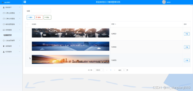 (6)系统管理:管理员点击“系统管理”菜单可以对首页展示的轮播图进行管理。