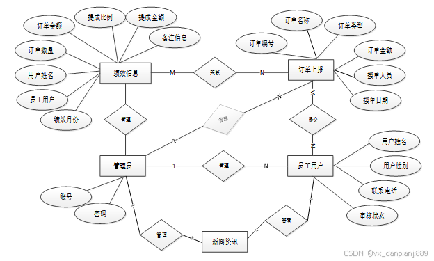 下面是整个员工绩效管理系统中主要的数据库表总E-R实体关系图。