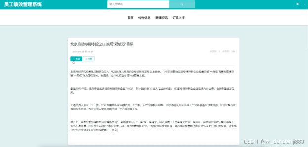 通过本文的研究和实践,我们成功地基于Spring boot设计并实现了一个员工绩效管理系统。该平台具有稳定、高效、可靠的特点,通过合理的功能模块设计和架构设计,提供了良好的用户体验。在系统测试中,验证了系统的稳定性和功能完整性,表明基于Spring boot技术在快速开发和高质量软件构建方面具有显著优势。