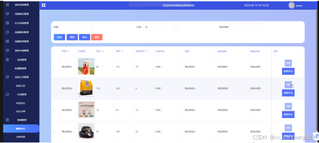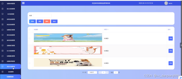 - 系统管理:管理员在“系统管理”这一菜单下对轮播图进行管控,可以对轮播图信息进行增删改查操作。