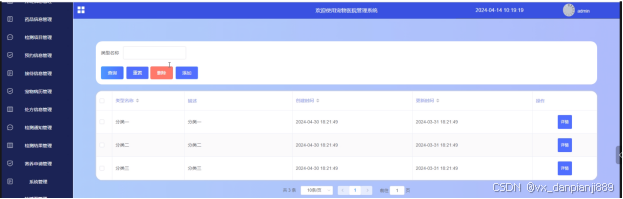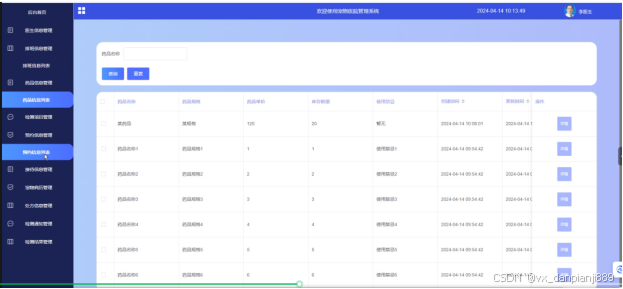- 药品信息管理:用户可以查看药品信息列表中某个药品的详情,可以查询和重置药品信息。