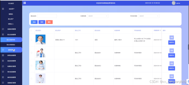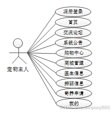 - 系统用户:管理员负责医生用户账号的添加;管理员可以查看系统用户(管理员、医生用户、宠物主人)信息进行增删改查操作。