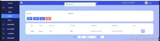 - 排班信息管理:管理员可以查看排班信息列表中某个排班信息的详情,可以对排班信息进行增删改查操作。