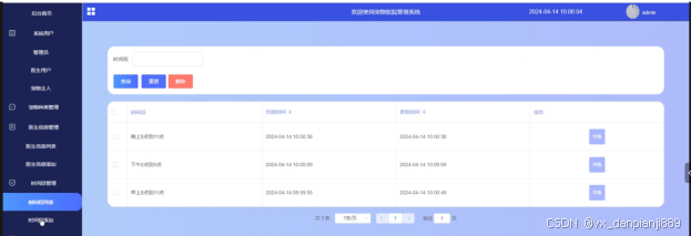 - 时间段管理:管理员可以查看时间段列表中某个时间段的详情,可以对时间段信息进行增删改查操作。