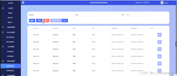 - 排班信息管理:用户可以查看排班信息列表中某个医生的排班详情,可以查询个重置列表信息。
