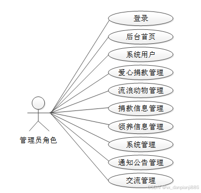 | 用例描述 | 管理员正确登录后台管理的条件下,对领养信息模块进行管理 |