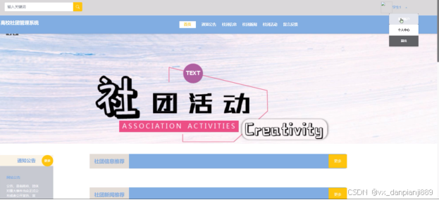 - 首页:用户可以查看首页展示的轮播图、社团信息、社团活动等内容。