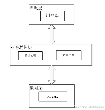数据层(DL):由于本高校社团管理系统的数据是放在服务端的MySQL数据库中,因此本属于服务层的部分可以直接整合在业务逻辑层中,所以数据层中只有数据库,其主要完成本高校社团管理系统的数据存储和管理功能。