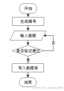 用户成功登入系统后就能够实现增加数据的操作,增加数据的编号由系统生成,用户不能随意填写,除了编号以外,其他增加信息用户自己填写,填写后的信息经过系统验证,验证通过后即可完成数据新增,数据新增的流程图如下图2-1所示。