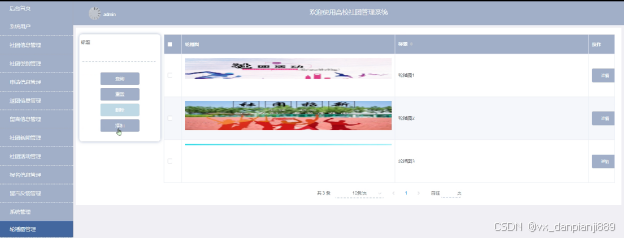 管理员可以对系统管理的轮播图信息进行查询、添加、重置和删除操作,其界面如下图4-13所示。