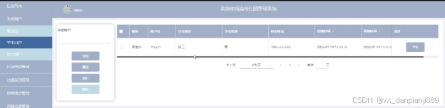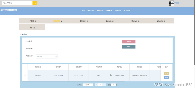 - 申请信息管理:社长用户在申请信息列表可查看所有学生的申请入团信息并可进行审核通过和回复操作。