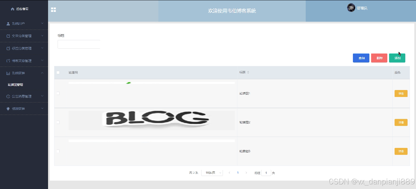 系统管理,管理员在对轮播图进行添加、修书或删除操作,如图4-12所示。